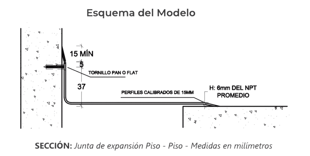 La Tapajunta de Dilatación Sísmica D90PC (Tipo Doblez de 90° con Pestañas Calibradas) de fabricación de ACEROS Y MOLDURAS S.A.C Ha sido diseñada para la protección de las juntas de dilatación sísmica, para el tránsito peatonal y durante un movimiento sísmico. Razón por la cual uno de los lados queda anclado para permitir el desplazamiento de la misma.
