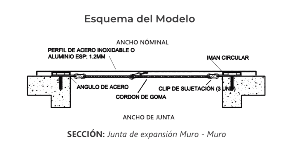 La tapajunta sísmica de pared y techo imantada (AYM-TMM) es un modelo aplicable a juntas en muros y techos de alta flexibilidad y resistencia, con capacidad de movimiento multidireccional gracias a sus sistemas de imanes, conformada de Acero Inoxidable o aluminio según requerimiento del cliente.