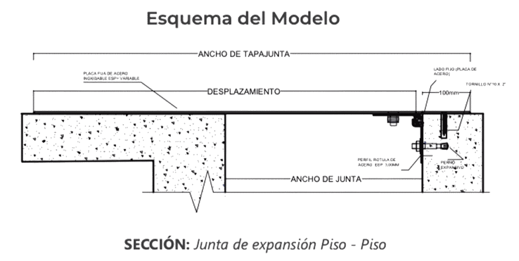 La tapajunta sísmica (AYM-TPR) tiene un sistema de pin y riel aplicable a juntas en pisos de alta flexibilidad y resistencia, su capacidad de movimiento de 200% permite movimientos multidireccionales segun norma ASTM E1399.